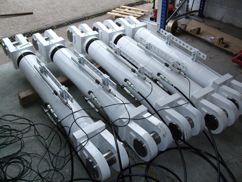 "150 Ton jacks used to change the expansion joints on the Severn Bridge" Stroke and pressure outputs from control system sent via Vodafone signal to an internet based telemetry website. Click to view larger image